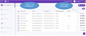 Deleting and disabling accounts on Gcalls is only possible with admin accounts or authorized accounts.